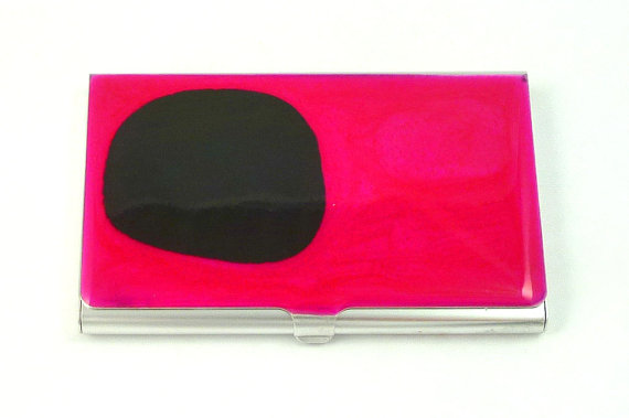 Each piece was intricately painted (including the back ) and created by the Artist. Using an original technique Aluminum Card Holder developed with different textures of resin and sometimes combined with other materials to achieve the look of depth and captured motion.